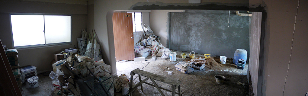 | Master bathroom - waiting for alcove wall to up before final tiling works |